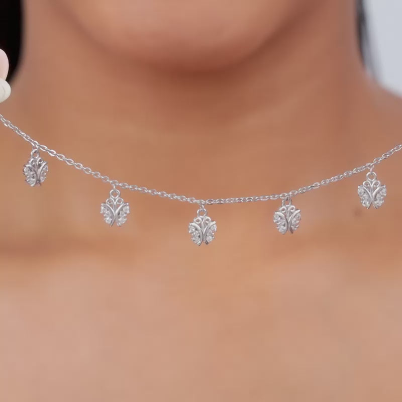 This silver bracelet for women features five butterfly motifs. Each is studded with sparkling zircons.