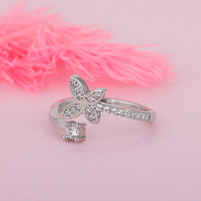The Silver Enchanting Elegance Ring is inspired by the captivating beauty of a butterfly as it spreads its wings to fly.