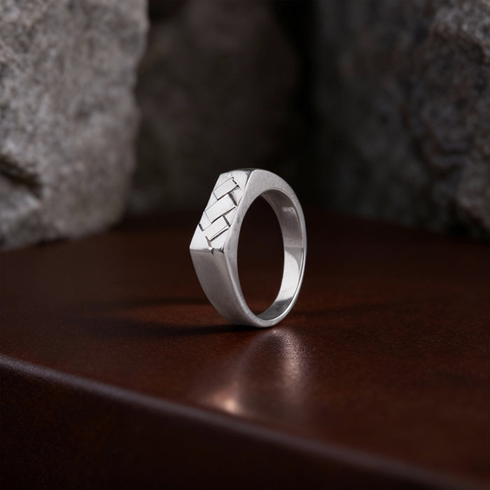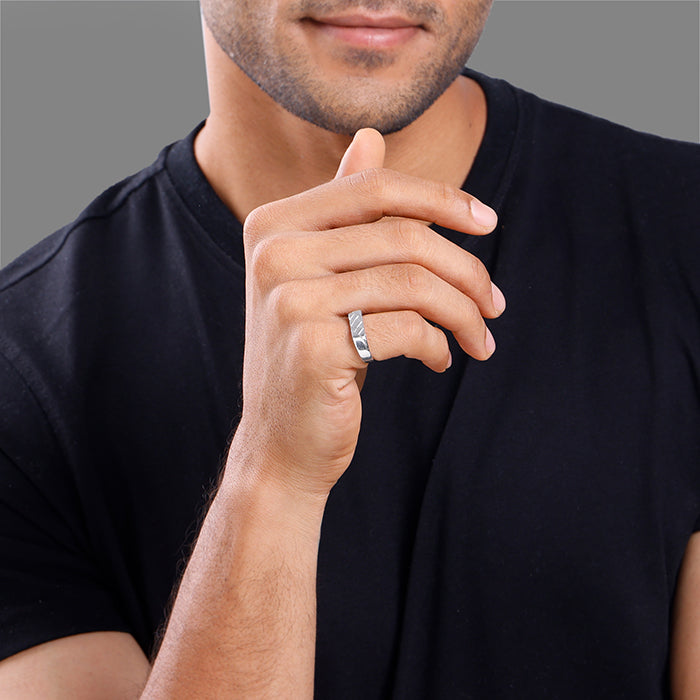 The striking geometric pattern of this ring reflects confidence, ambition, and magnetic charm. Perfect for the man who leads, inspires, and stands apart.