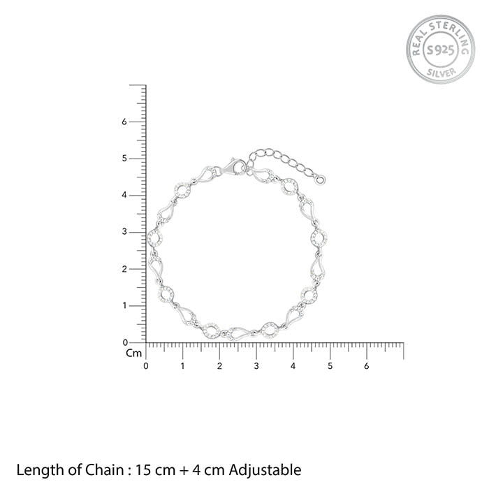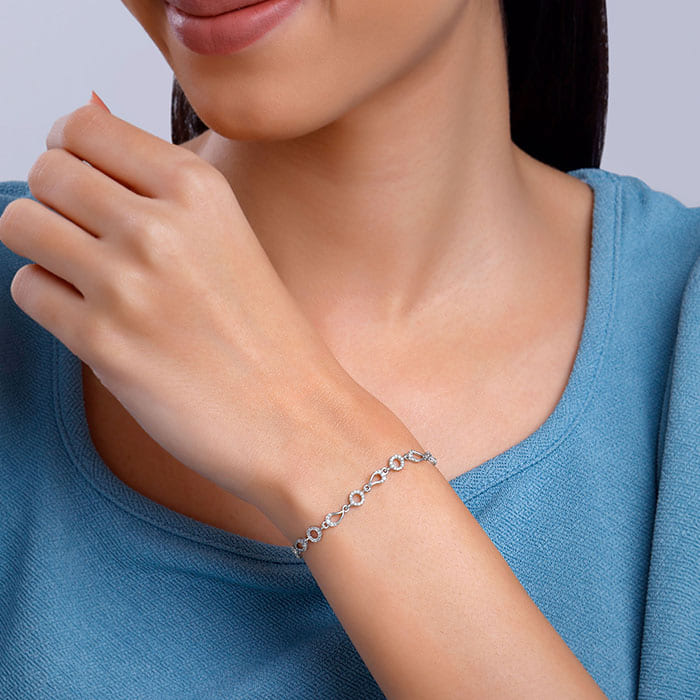 This silver bracelet for women features an interlocked design with paisley and circular motifs placed alternatively and studded with zircons. Celebrate the timeless beauty of Indian textiles with GIVA's latest 'Magic of Tradition' collection. Wear and celebrate tradition, anytime.