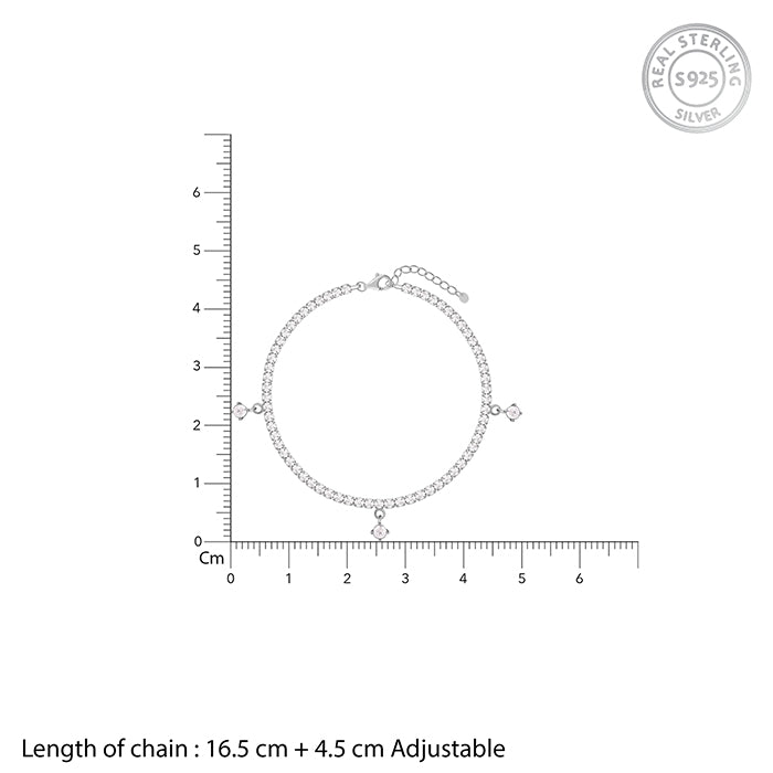 This tennis bracelet is lined with sparkling zircons and finished with dangling charms that move with you, offering effortless elegance that demands attention. Secure with a lobster clasp and adjustable chain, it’s proof that confidence is the best accessory.