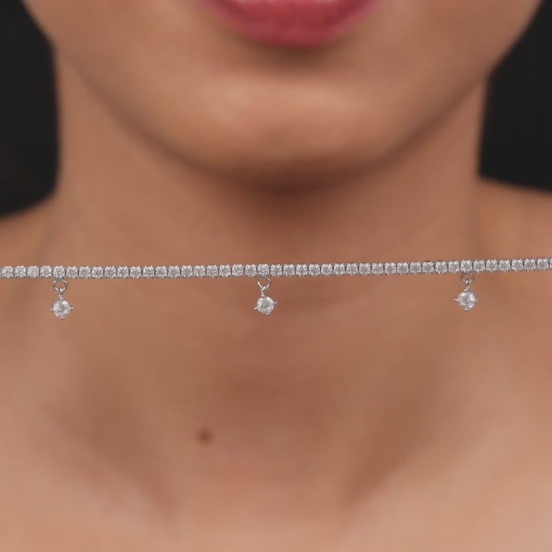 This tennis bracelet is lined with sparkling zircons and finished with dangling charms that move with you, offering e...