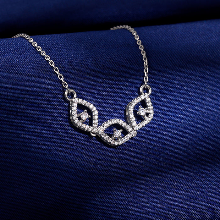 This silver necklace for women features three eye-shaped outlines studded with zircons. Each outline has a zircon placed at the centre.