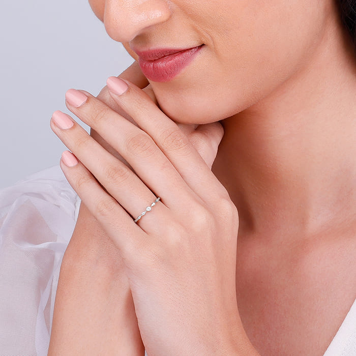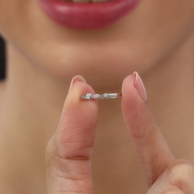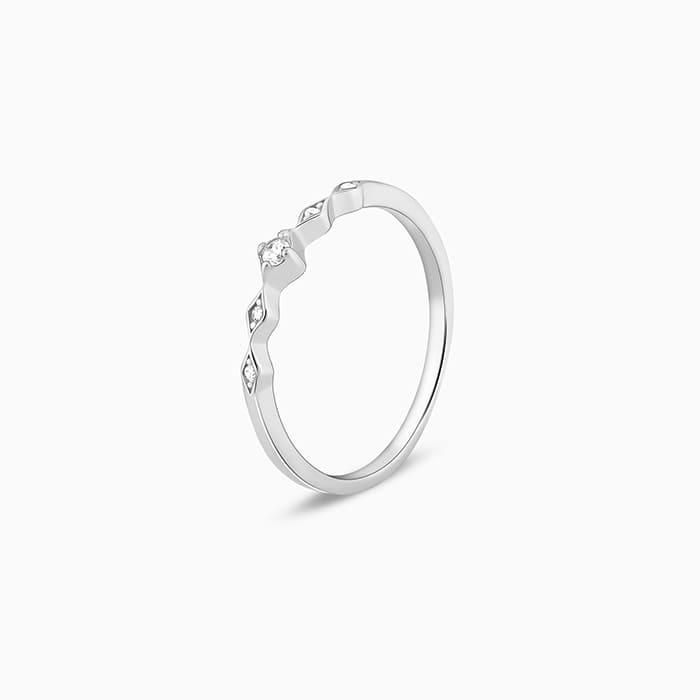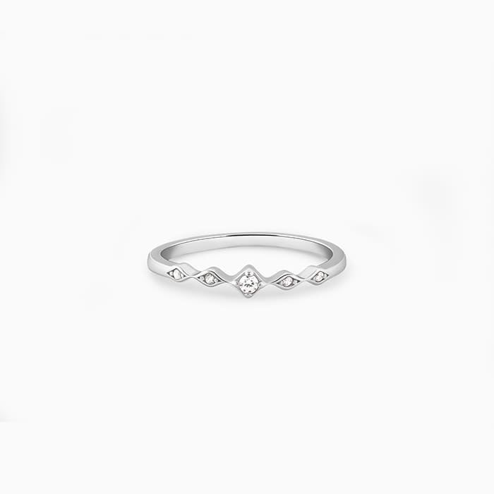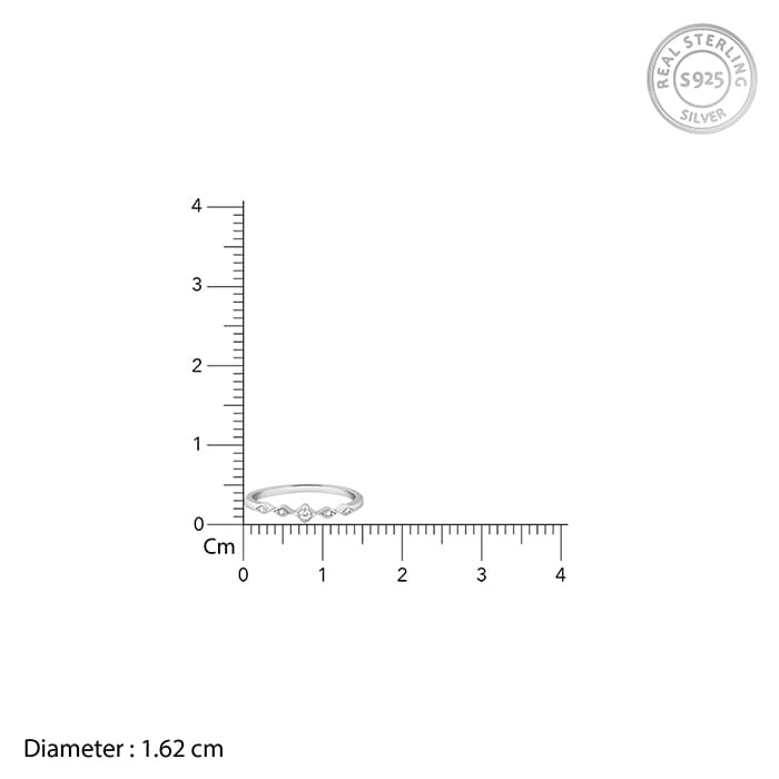 This silver ring features a rhombus motif at the centre, with two oval designs on both sides studded with zircons.