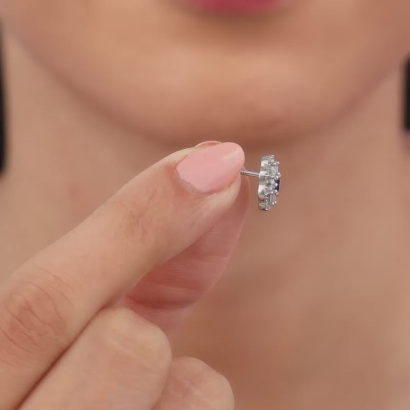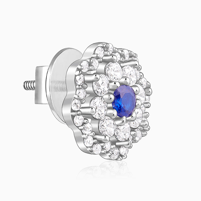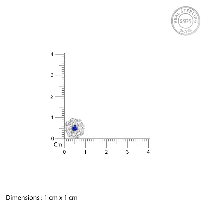 These womens silver earrings feature a cluster of zircons arranged in a floral motif. A coloured stone sits at the core of these beauties.