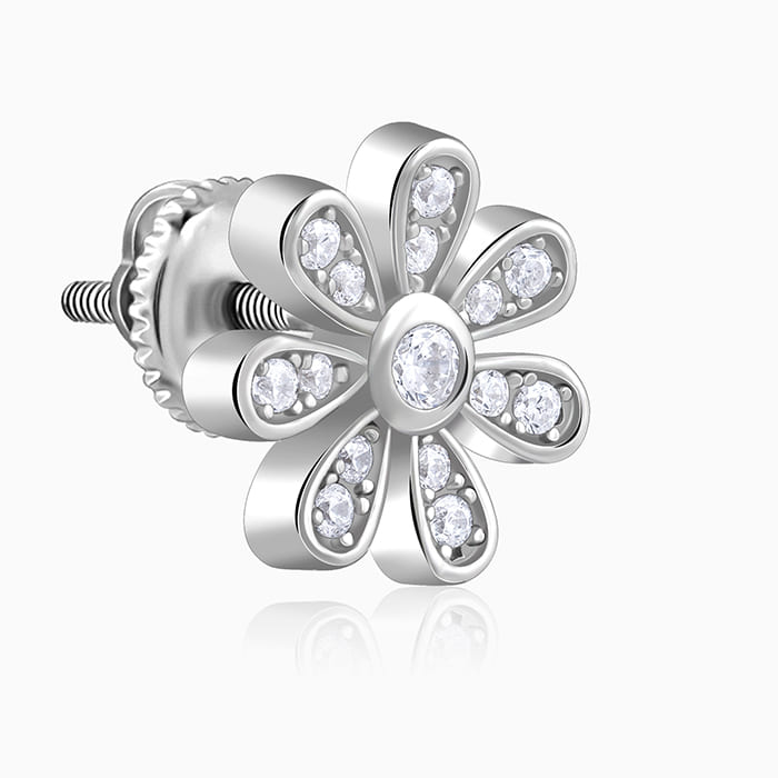 These silver earrings for women feature a flower motif, with pave setting studded with zircons.