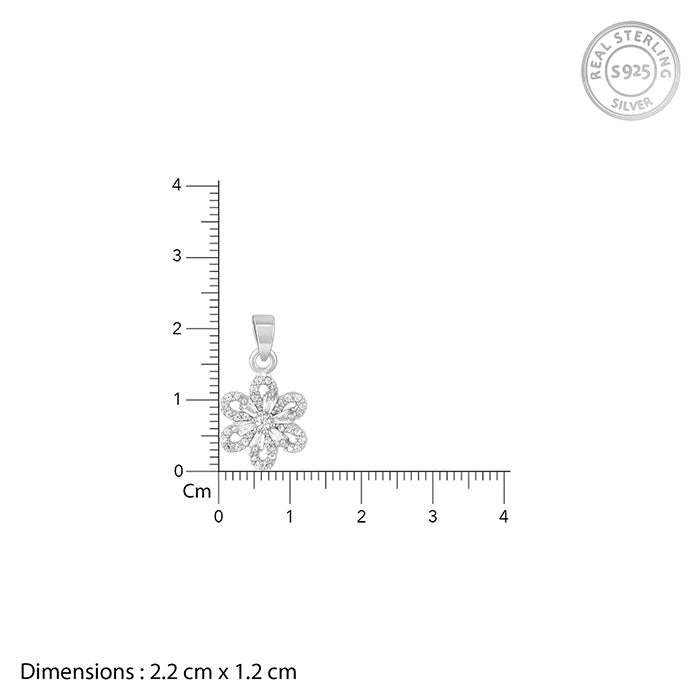 This silver pendant features a flower motif studded with zircons.
