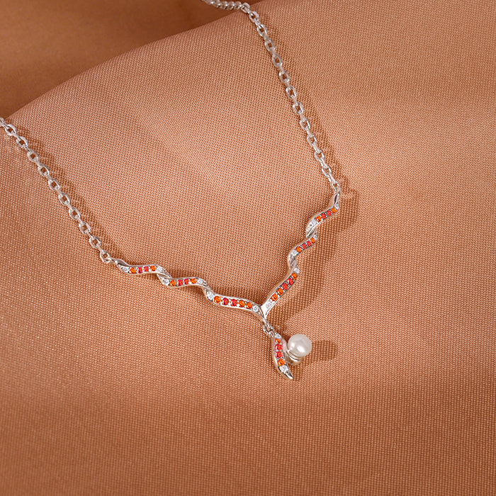 This silver necklace for women features a wavy design studded with colourful zircons and zircons. A single pearl is attached at the centre. Designed in Italy. Inspired by India. Embrace the goddess within with the Shakti Collection by GIVA x Anna Giulia Chicco.