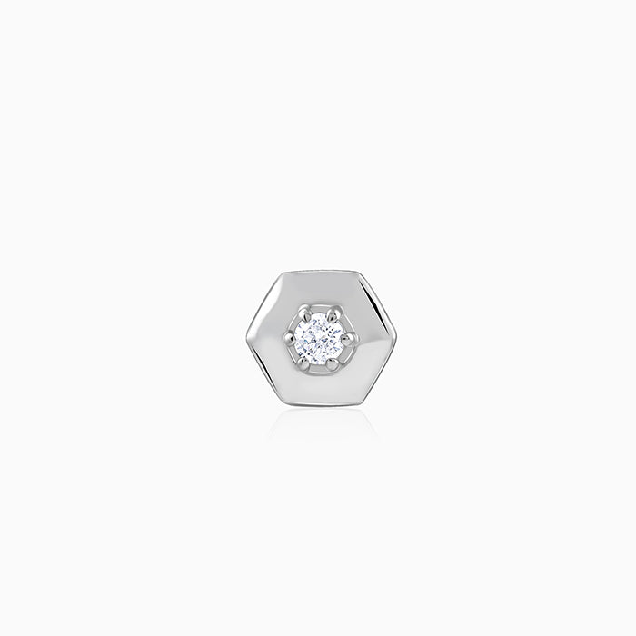 This silver stud for men showcases a modern polygon design with a brilliant zircon set at the center, adding a striking focal point of sparkle.