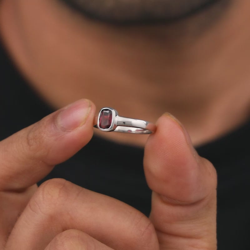 Silver Garnet Squircle Ring For Him