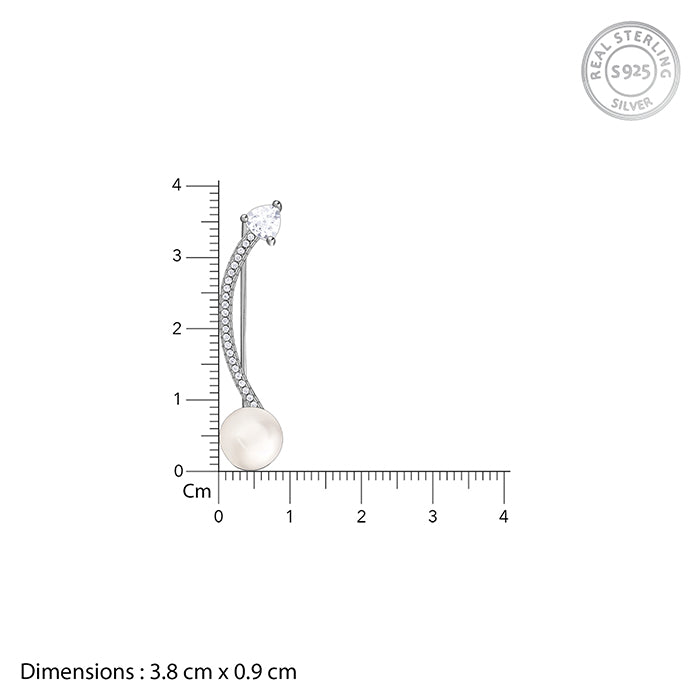 These climber earrings feature a graceful curved line of pavé set stones that sweep along the ear, ending in a luminous pearl drop. A pear-cut stud anchors the design with focused brilliance. An ode to timeless beauty, our freshwater 'Pearl Collection' is designed to complement every woman with refined, classic elegance.