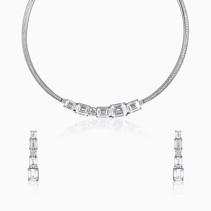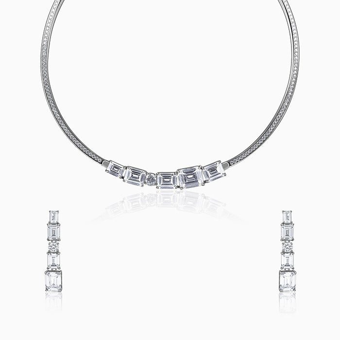 See this set? A choker necklace with matching earrings, and honestly, it’s like it’s throwing a little party just for you. The square zircon at the centre? Bold, unapologetic - totally your vibe when you walk in and own the room. The circle zircon wraps it all in perfect harmony, a little reminder that strength and grace can sparkle together