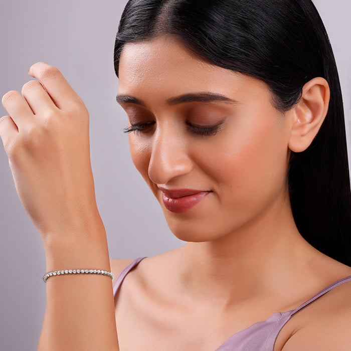 Wrapped in bezel-set zircons, this bracelet doesn’t just shine - it reminds you of the way you walk into every room: ...