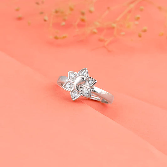 Silver Ganesha Floral Ring