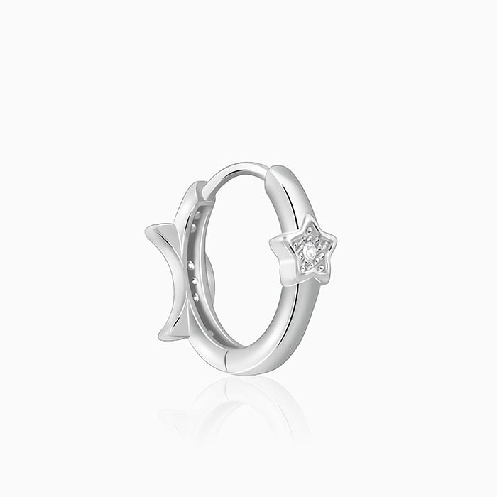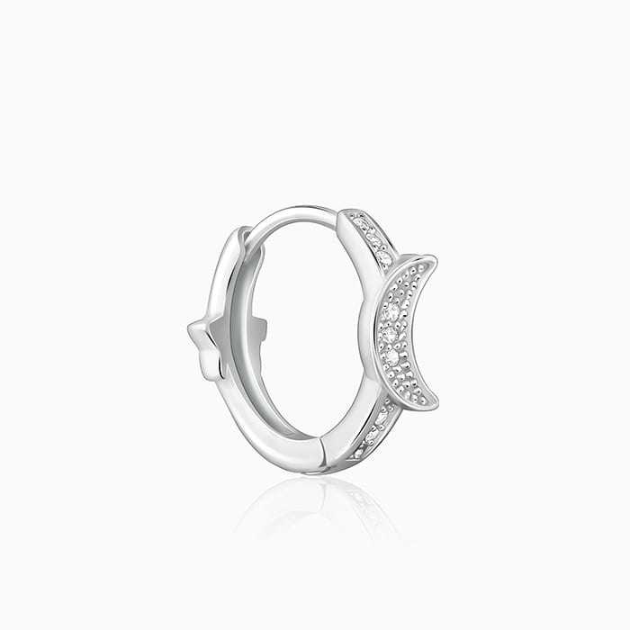 Carry a slice of the night sky with hoops that dazzle like moonlight.The Design: These silver hoop ...