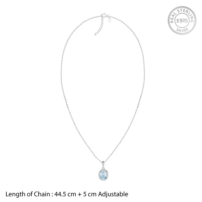 This silver pendant for women features a natural oval-shaped blue topaz stone as the centrepiece, surrounded by a halo of smaller zircons. This pendant comes with a link chain. From nature’s heart to yours - GIVA's natural Gemstone Collection makes every occasion special, whether you’re gifting a loved one or treating yourself.