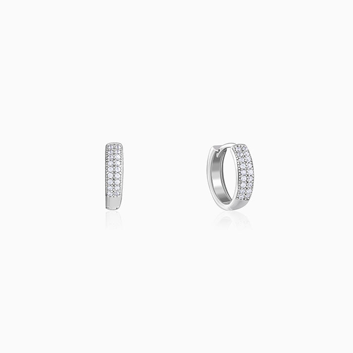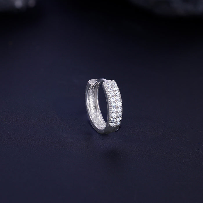 This silver hoop earrings for men showcases two parallel rows of zircons.