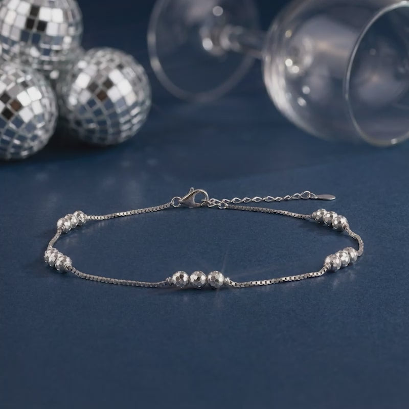 A silver anklet with three beads spaced along the chain, designed for the woman who loves subtle sparkle with every m...