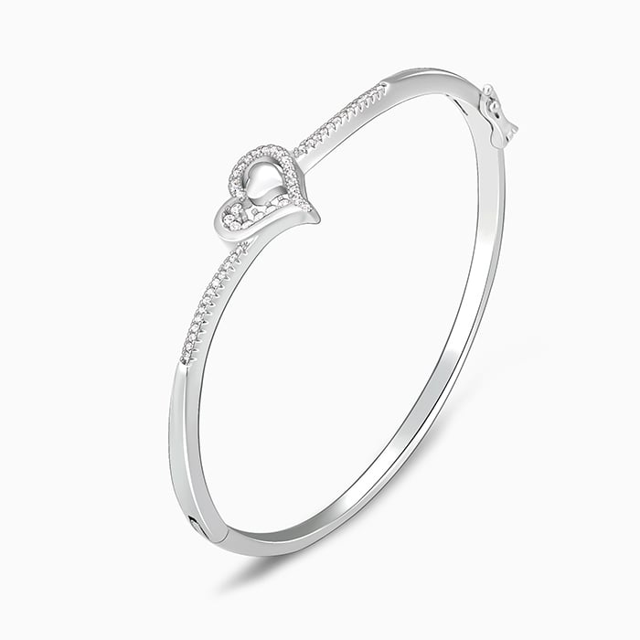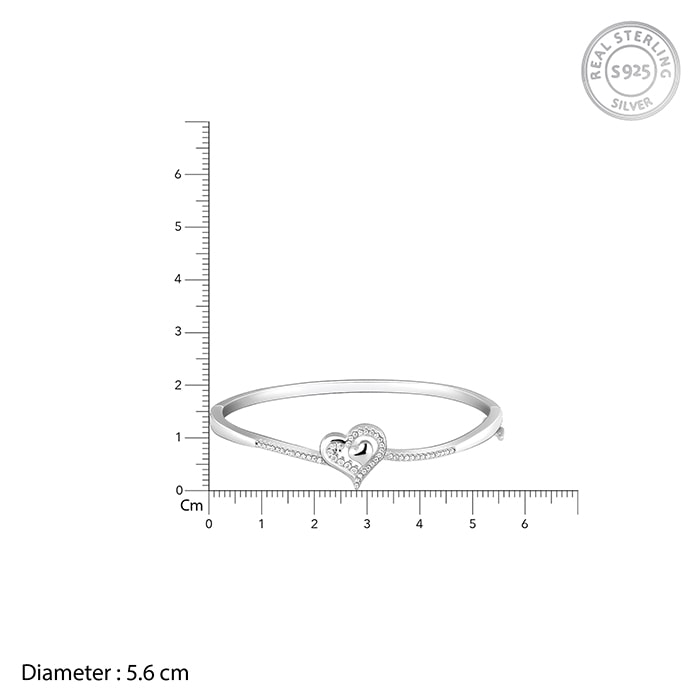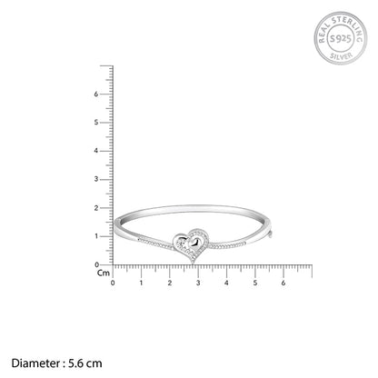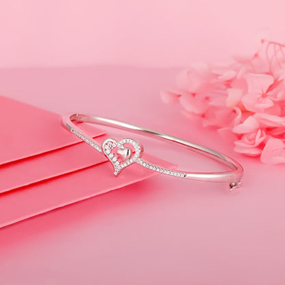 The Silver bracelet has a solid heart-shaped design within a heart-shaped zircon studded motif.