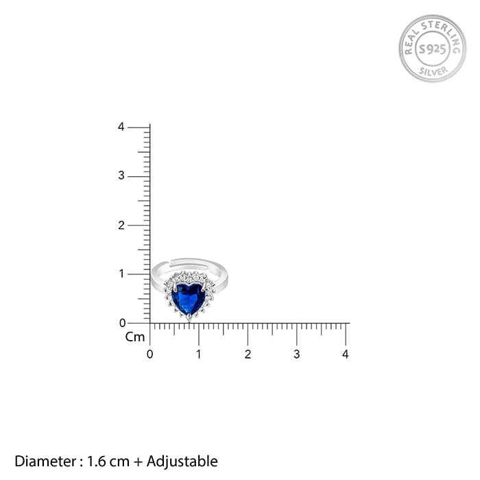 This silver ring has a gorgeous heart-shaped blue-coloured stone and is surrounded by studded zircons.