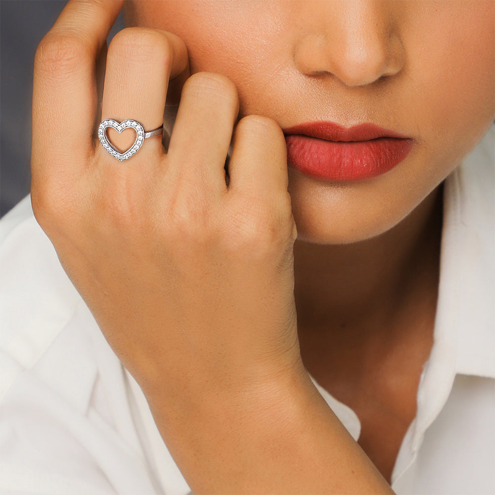 The Silver Heartstealer Ring has a gorgeous but simple design of a fuller heart with a zircon encrusted lining made for the absolute best.