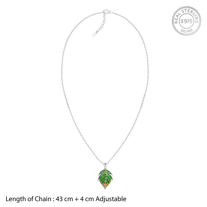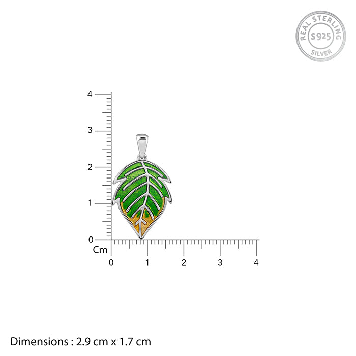 This silver pendant with link chain for women features a leaf motif filled with enamel.
