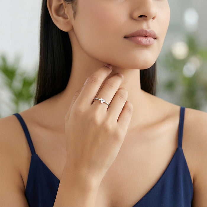 She wears her heart with confidence and chooses jewellery that feels personal. This silver ring for women features a heart at the centre, finished with zircons that add shine and presence.
