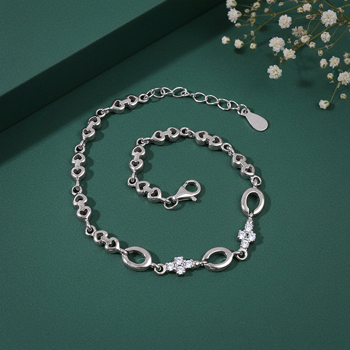 Three ovals meet at the centre, like three chapters of a story that always finds its way back to love. And the zircon clusters in between? Little sparks that hold the moments together. Gift this bracelet to someone who doesn’t just walk into your life - they complete the parts you didn’t even know were missing.