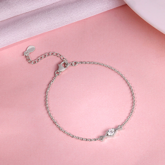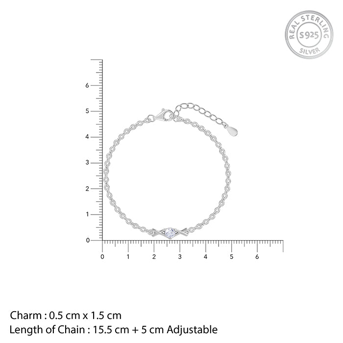 This silver bracelet for women features a twisted motif with a zircon placed at the centre with link chain on both sides.
