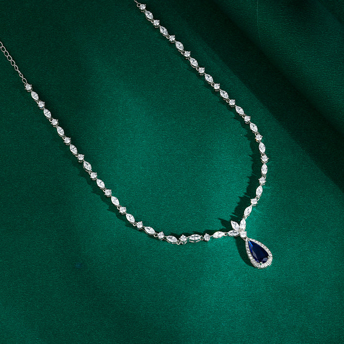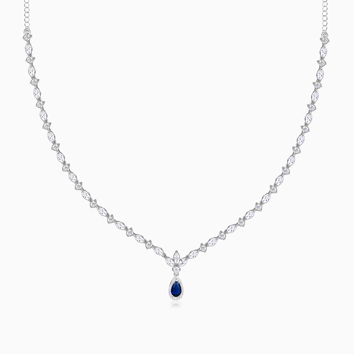 This silver necklace for women features a striking blue teardrop motif at the centre, bordered with shimmering zircons. The chain is studded with alternating zircon cuts, adding a subtle yet elegant sparkle throughout. Presenting our DIVA Collection - a limited edition silver jewellery meant for the women who own every room. Be the star of the party, always.