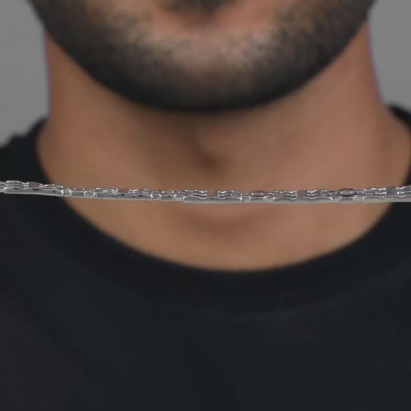 This classic yet minimal men's silver bracelet features a box pattern also known as pantera link design.