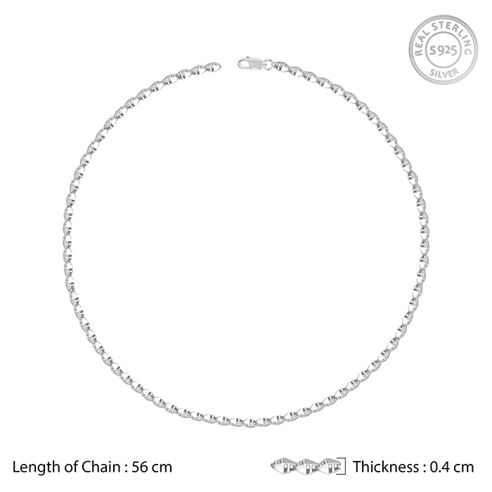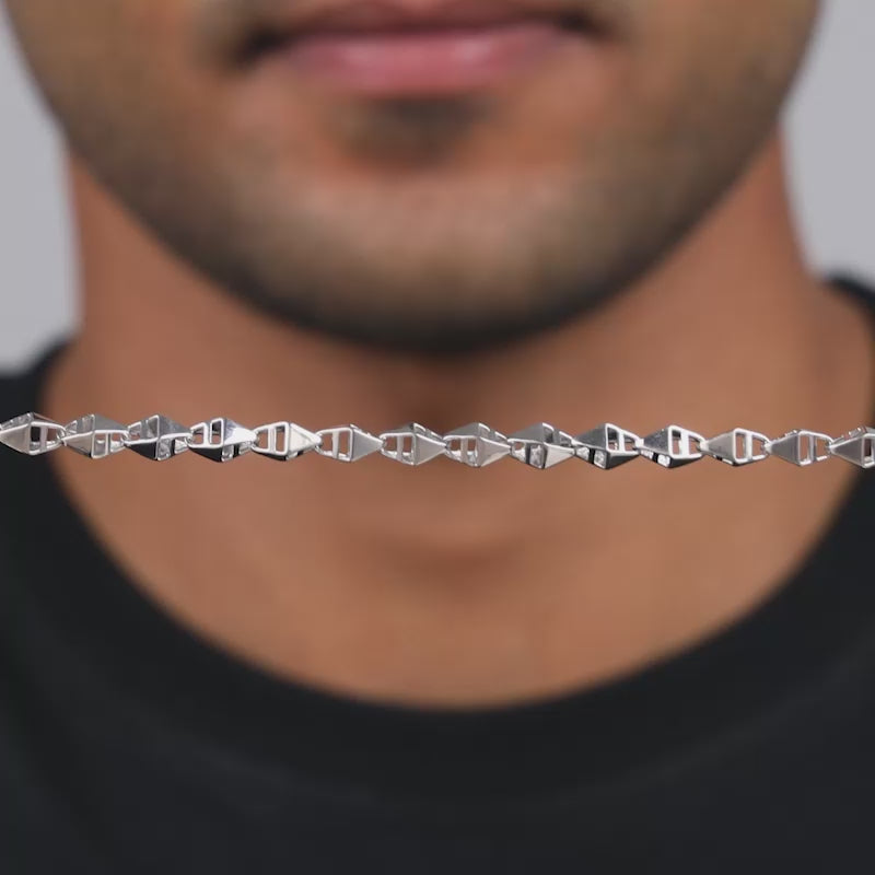 This silver chain for men showcases a kite-shaped beveled chain design.