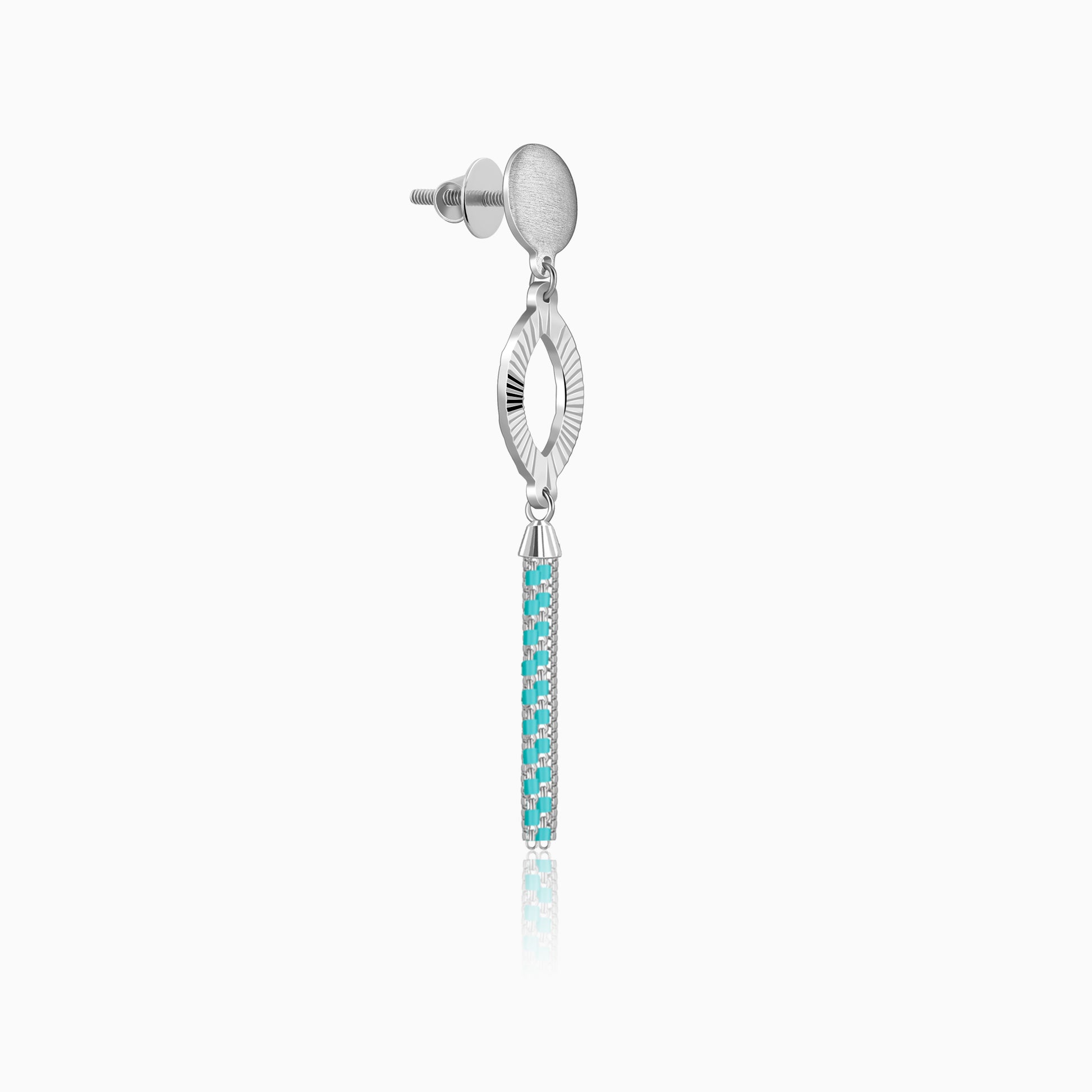 Make an unforgettable statement with these silver earrings for women, featuring a textured sunburst marquise frame that radiates refined charm. The design flows into a long, cascading tassel of box chains accented with vibrant turquoise beads made for the modern trendsetter. Barkha Singh x GIVA brings to you the Glow in Motion collection that celebrates CNC craftsmanship for the first time in silver.