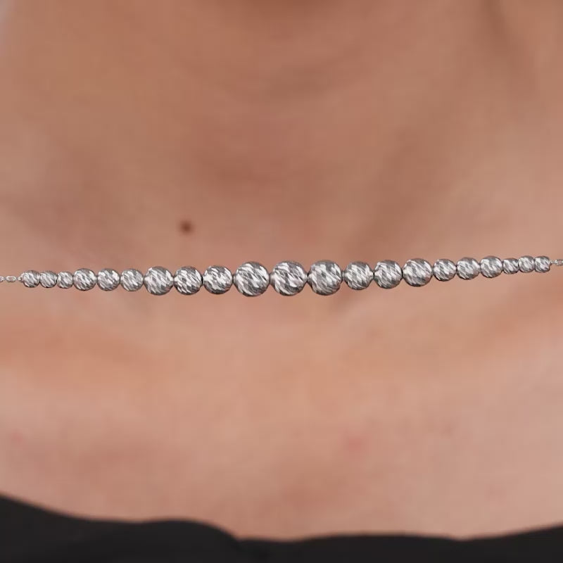 A silver beaded bracelet that catches every glint and sparkle, made for the woman who loves to shine at every moment....