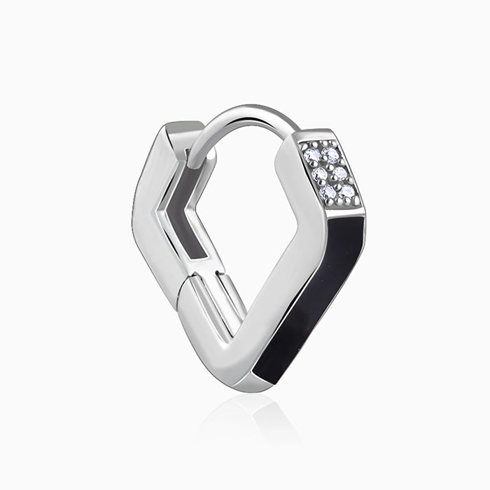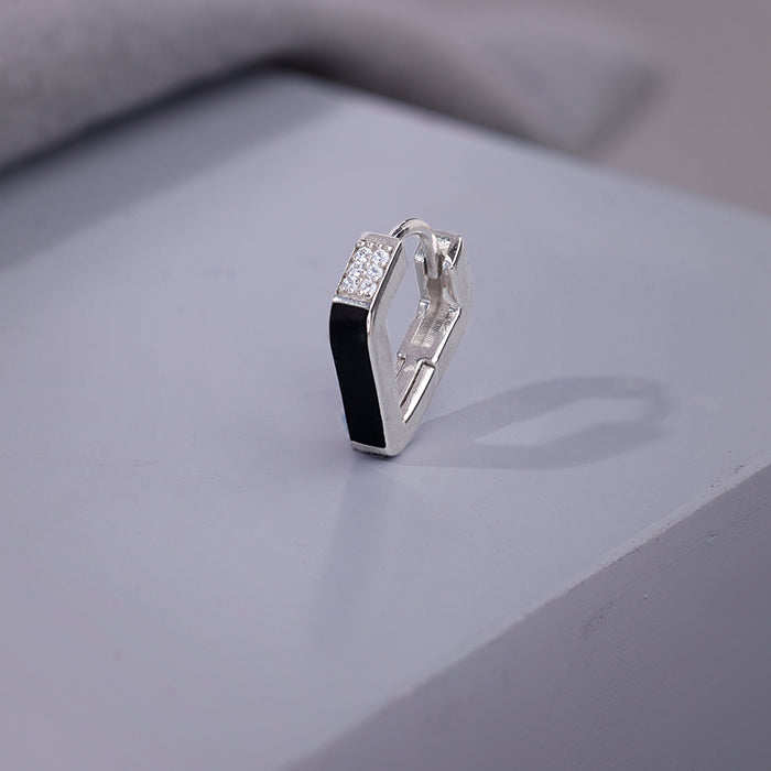 These silver hoop earrings for men showcase a sleek, modern design, with enamel detailing on the front face and sparkling zircons set along the top.