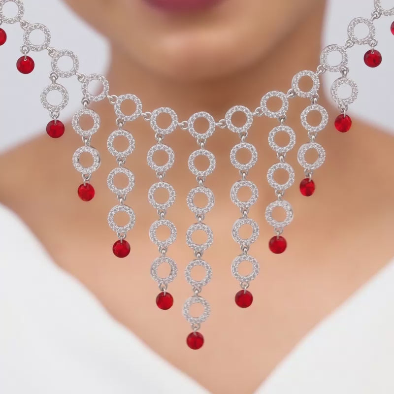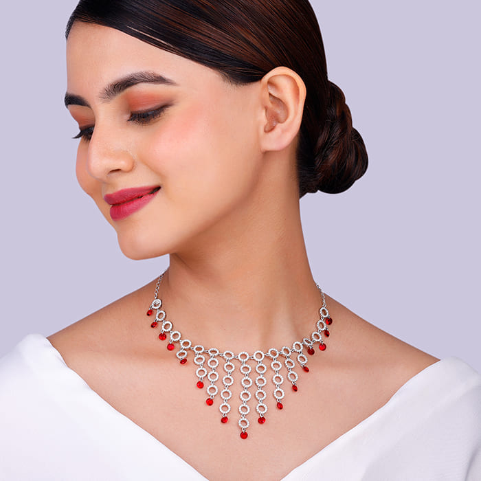 This rose gold pendant has a circular motif with a red stone placed at the centre surrounded by a circle studded with zircons. Celebrate your moments of passion with GIVA’s Red Romance Collection.