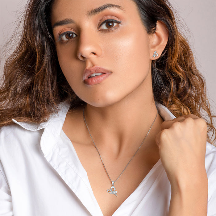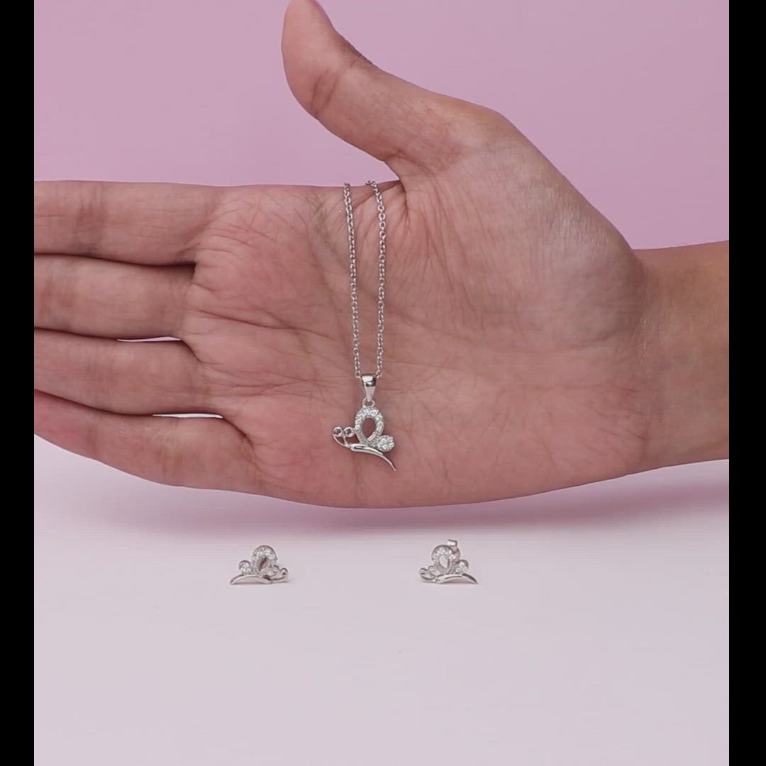 The Silver Love Like A Butterfly Set has a unique butterfly design with a centrepiece studded with gorgeous zircons.