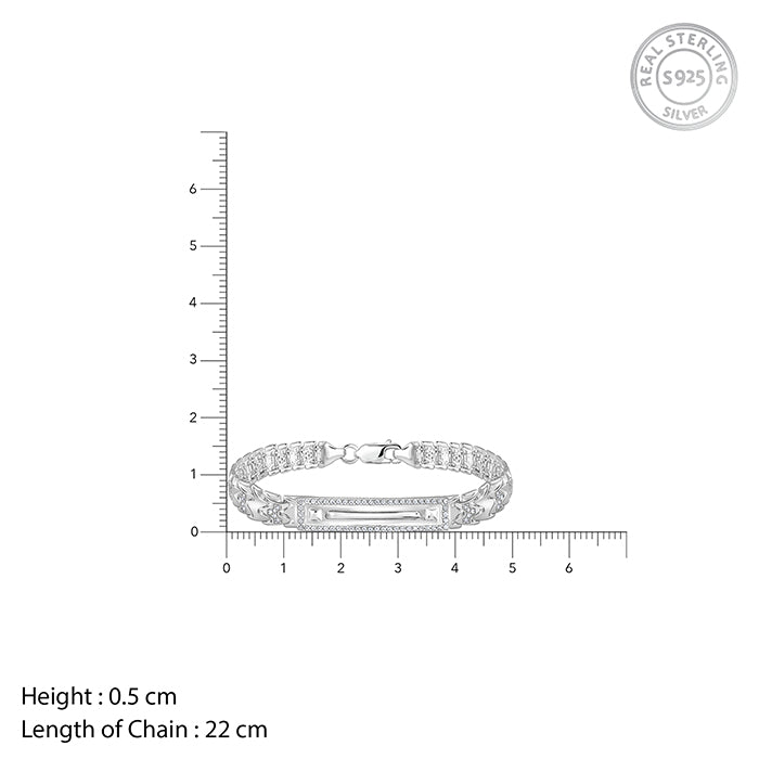 This silver bracelet for men features sharp cuts, refined edges, and a bold centreplate.