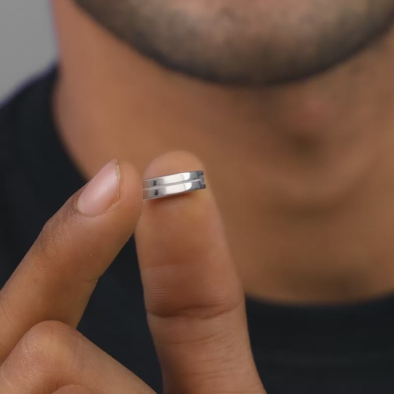 A regal twist on classic silver—where simplicity meets luxurious elegance.The Design: This silver r...