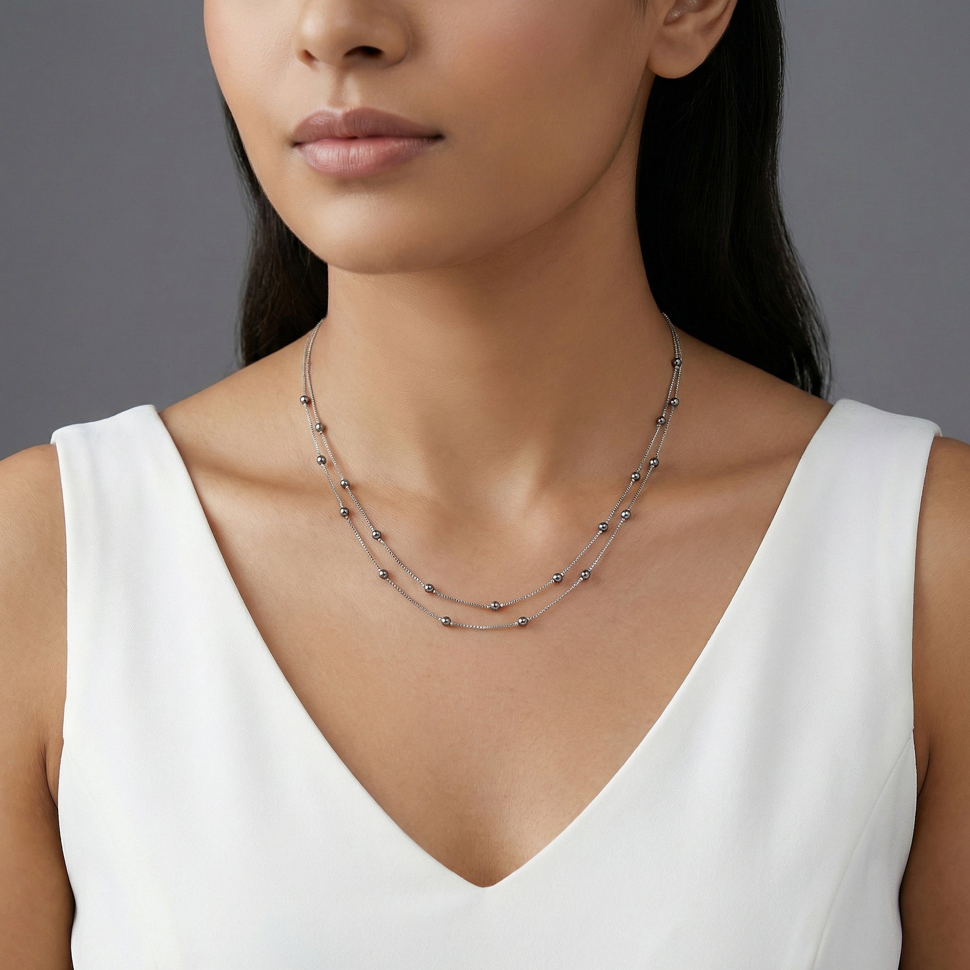 Silver Marilyn Layered Pearl Necklace