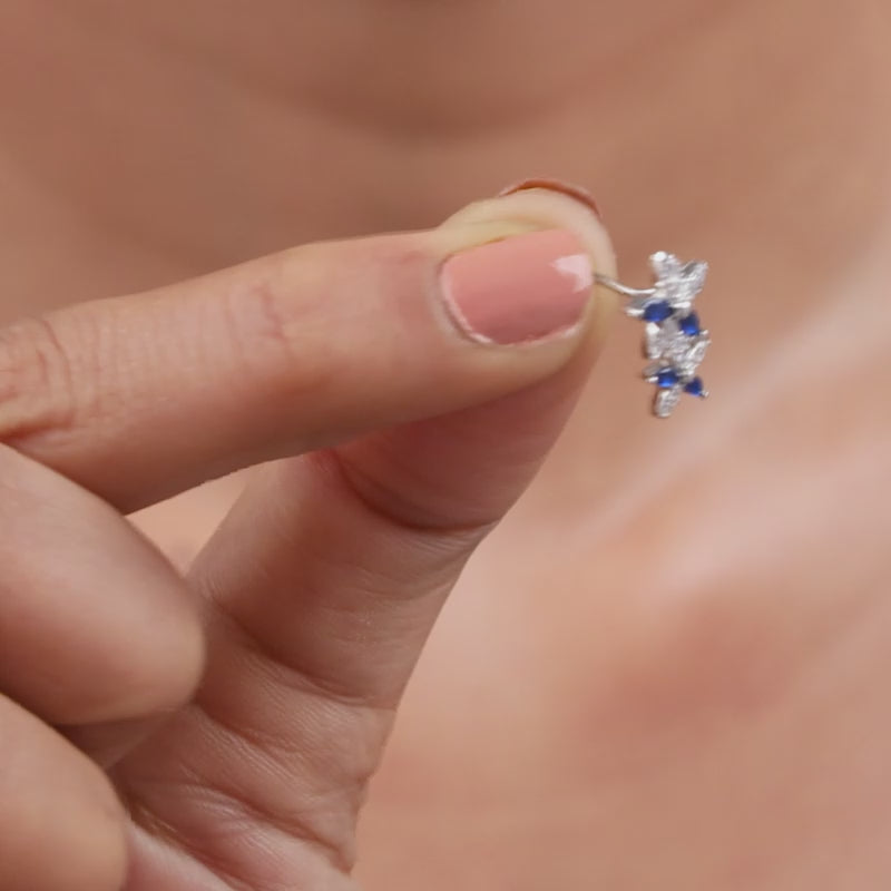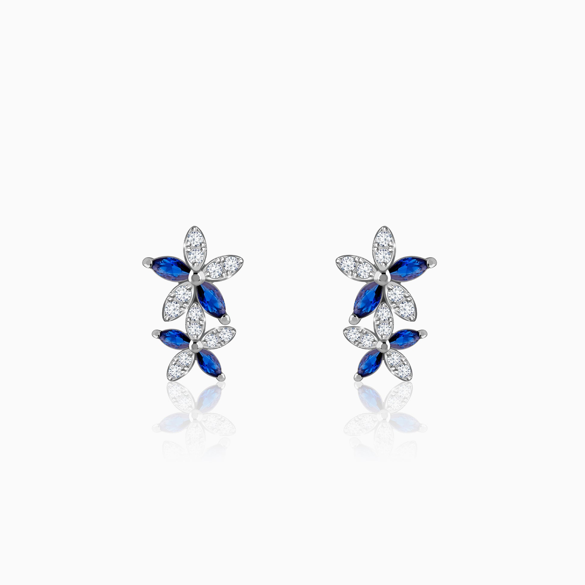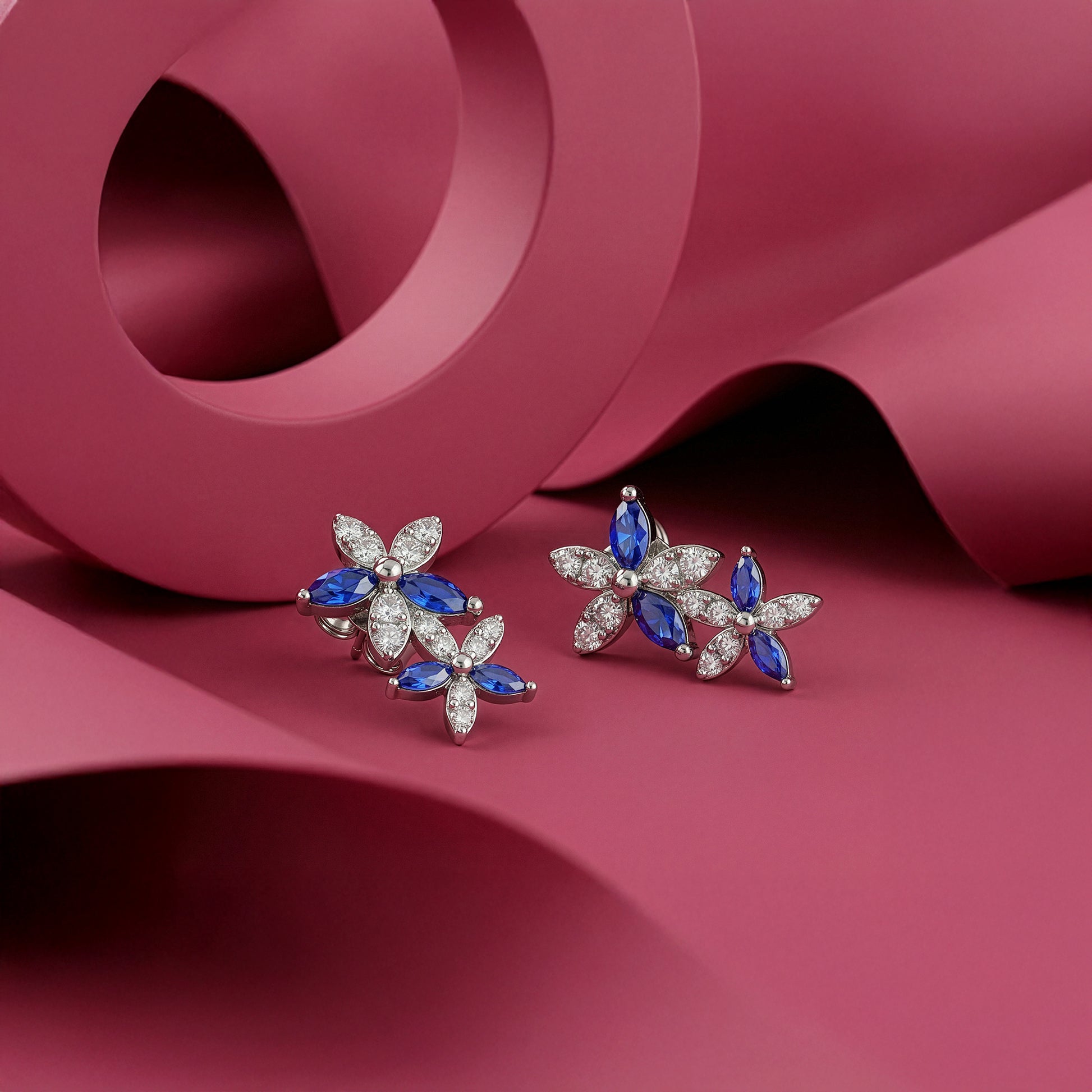 These silver earrings for women have a deep marwar blue hue that feels bold, fresh, and unapologetically stylish. Featuring an elegant alternating floral vine design crafted with marquise-cut zircons and vibrant coloured zircons, it’s not just an accessory, it’s your power move in jewellery form.