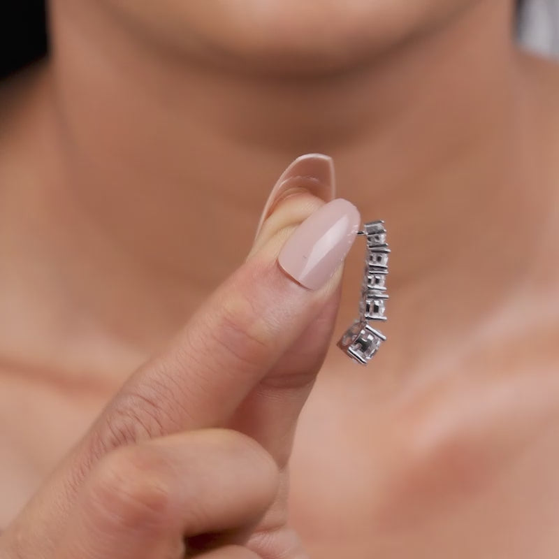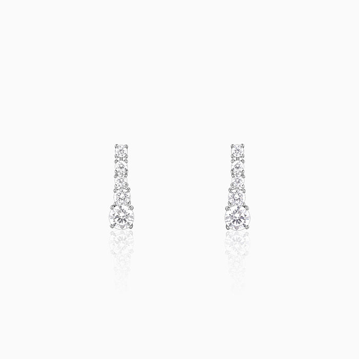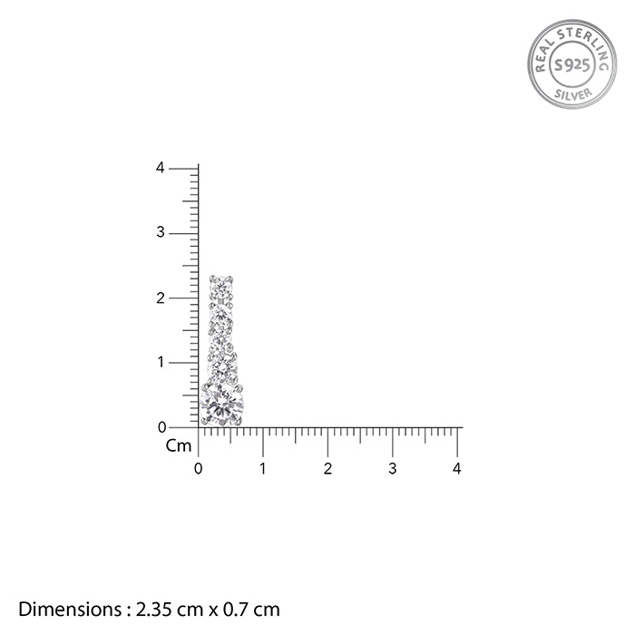 Earrings that feel like they belong in a grand gallery, not just a jewellery box. These silver earrings for women feature a vertical cascade of zircon stones, forming a sleek, elongated silhouette finished with a bold round-cut zircon drop.