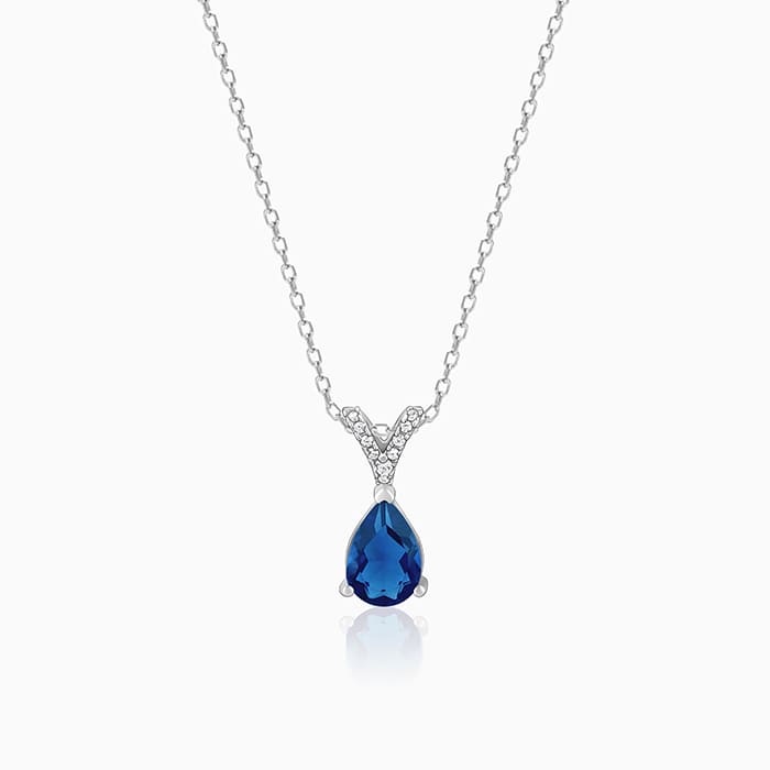 The silver pendant has a neat design with the presence of a pristine midnight blue coloured stone in the centre and surrounded by zircons making this pendant a masterpiece.