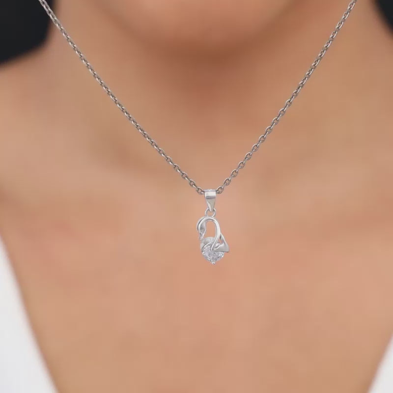 This Silver Mini Swan Pendant is handcrafted with love, just for YOU! A delicately crafted silver swan shines bright with its studded sparkling zircon. The silver body adds a sublime finishing touch.