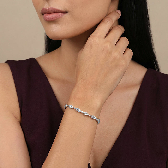 Protection, but make it stylish. This modern silver Nazar bracelet brings good vibes and great style together; it has zircon stones and is finished with a hidden clasp so it looks seamless on your wrist. Easy to wear, easy to love, and perfect for everyday layering.