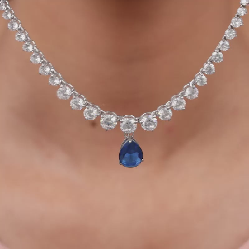 Think of it as your personal piece of moon-glow, always ready to lift your look. Designed in a classic tennis style with a striking coloured teardrop at the centre.