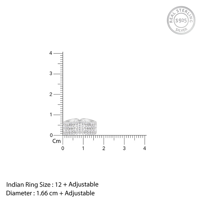 This silver ring for women features a crown-shaped band design studded with zircons.