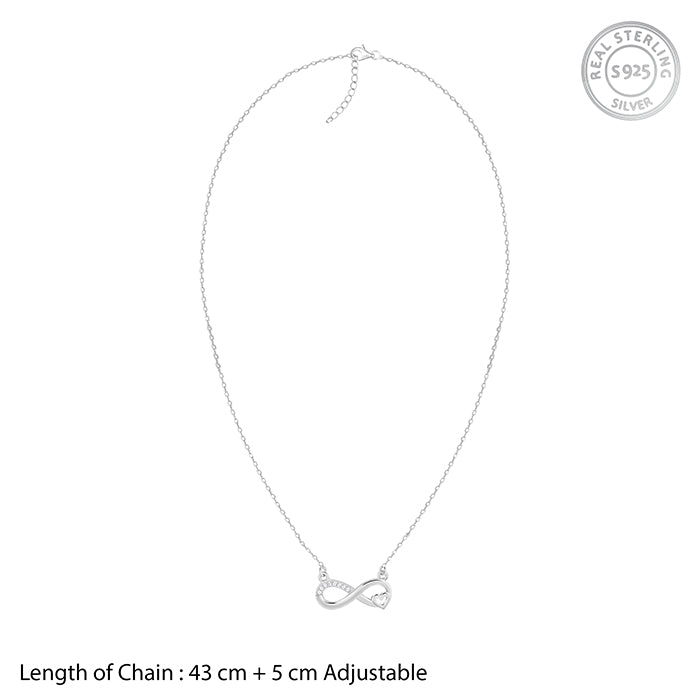 This piece celebrates endless love and connection, a symbol that speaks to lasting bonds and infinite possibilities. The design features an infinity motif, with a small heart on one side and shimmering zircons on the other.