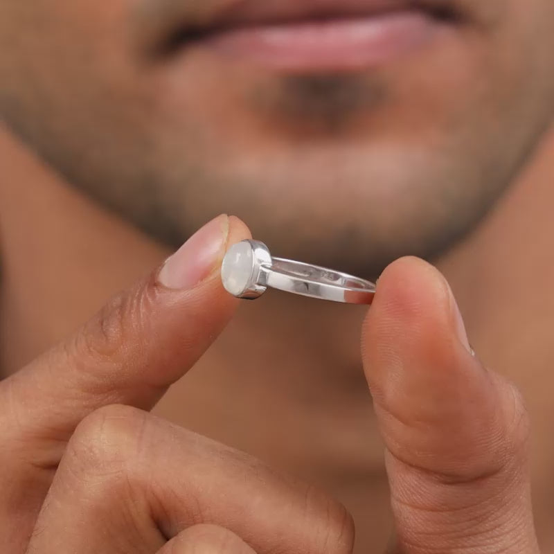 This ring glows like the confidence you carry wherever you go. This silver ring for men features a bezel-set oval-shaped moonstone at the centre. GIVA's natural Gemstone Collection makes every occasion special, whether you’re gifting a loved one or treating yourself.