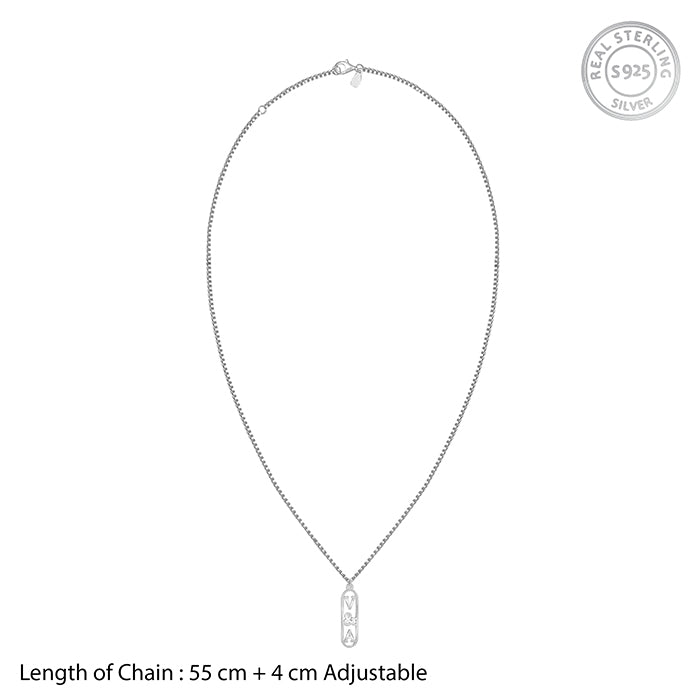 This pendant keeps it classy with a personal twist. This silver personalised pendant for women features the initial of your choice, set against a sleek vertical bar design.